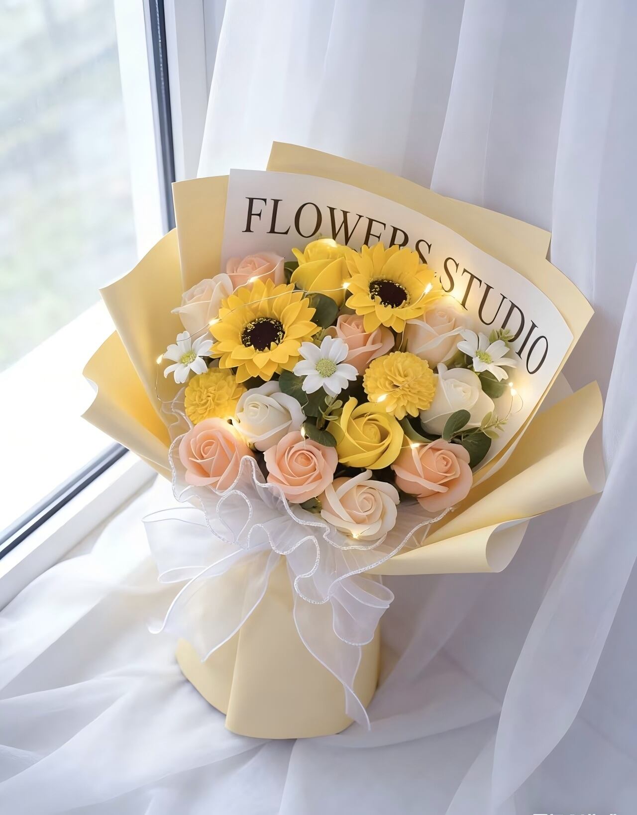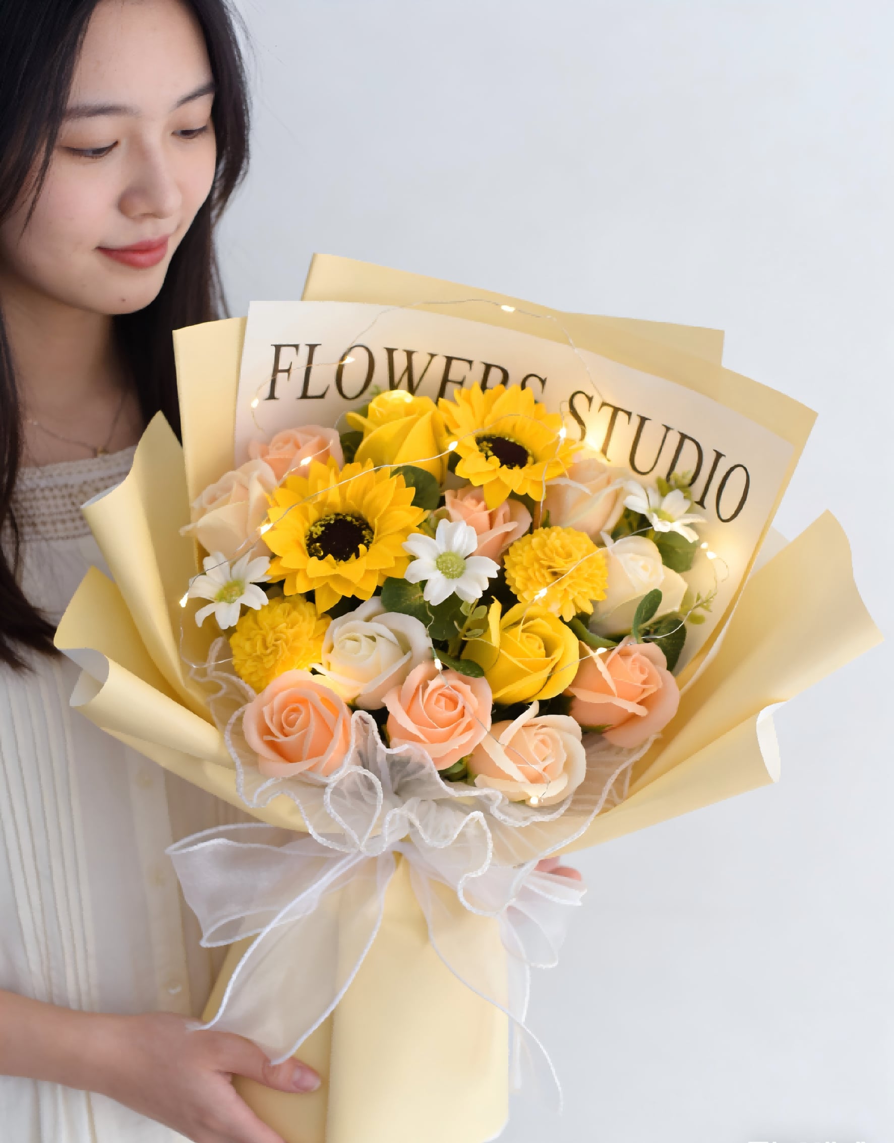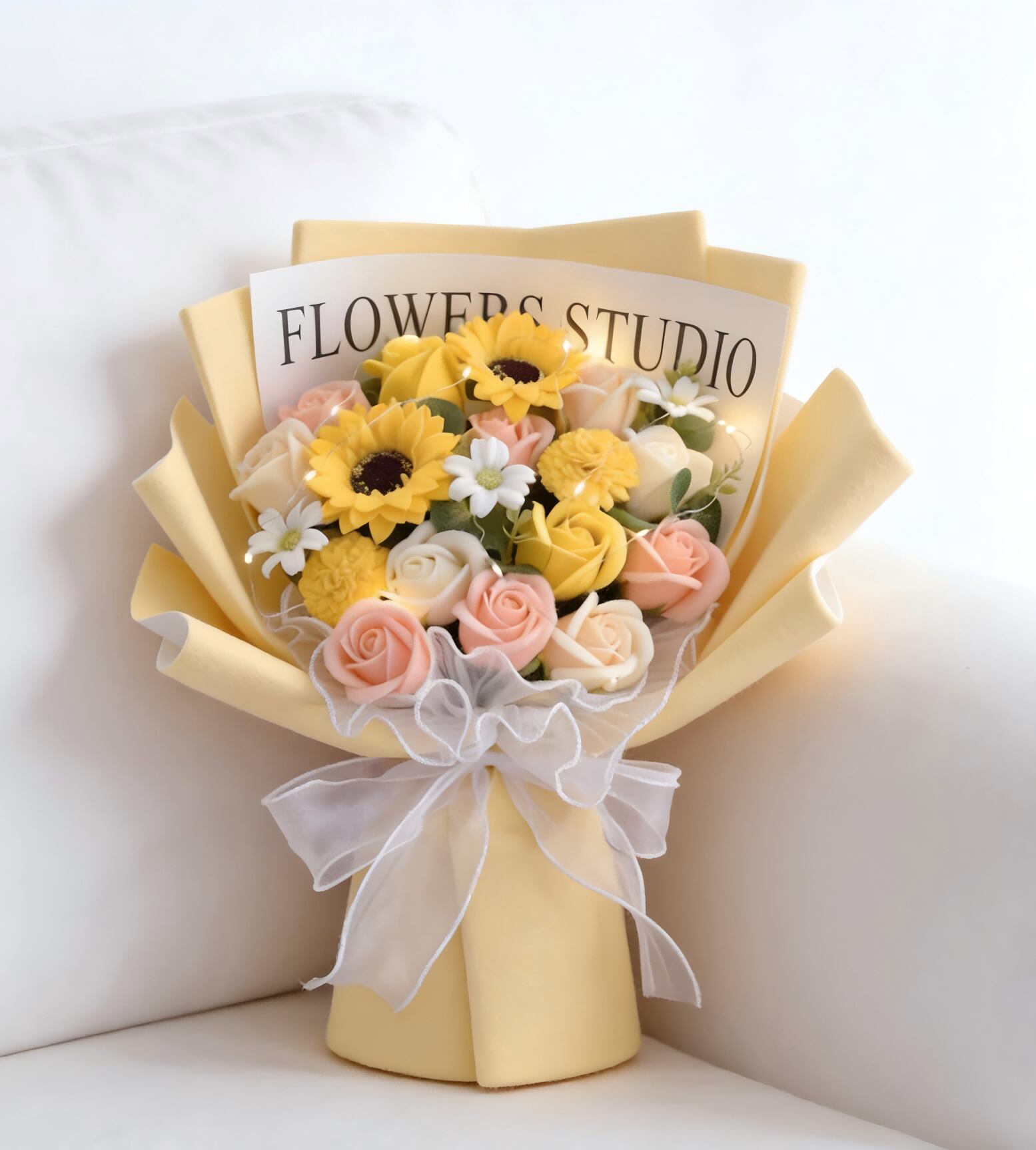※プレゼントに最適なソープフラワーの花束です。ほのかに石鹸の香りがする、石鹸素材から作られた造花なので、生花に比べて、長く鑑賞が楽しめます。