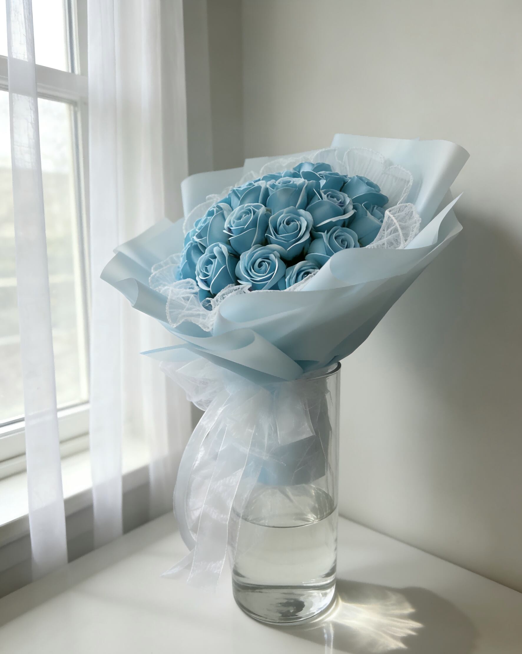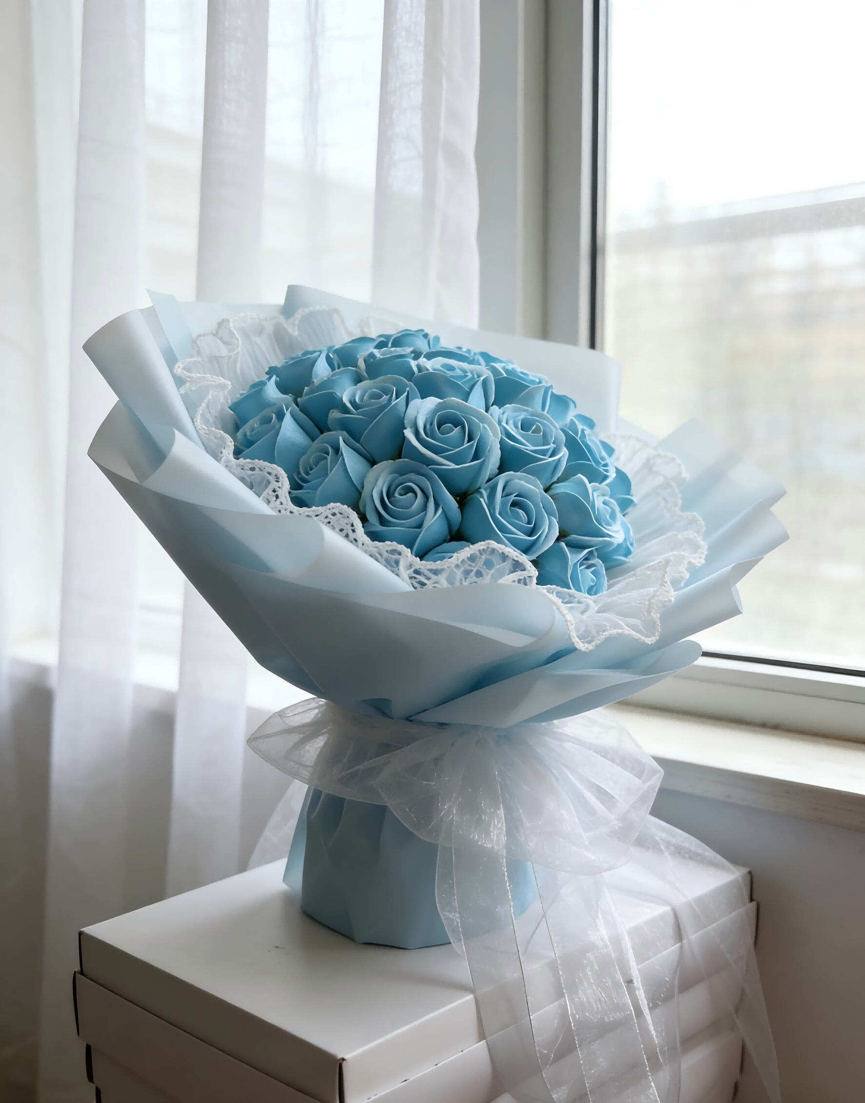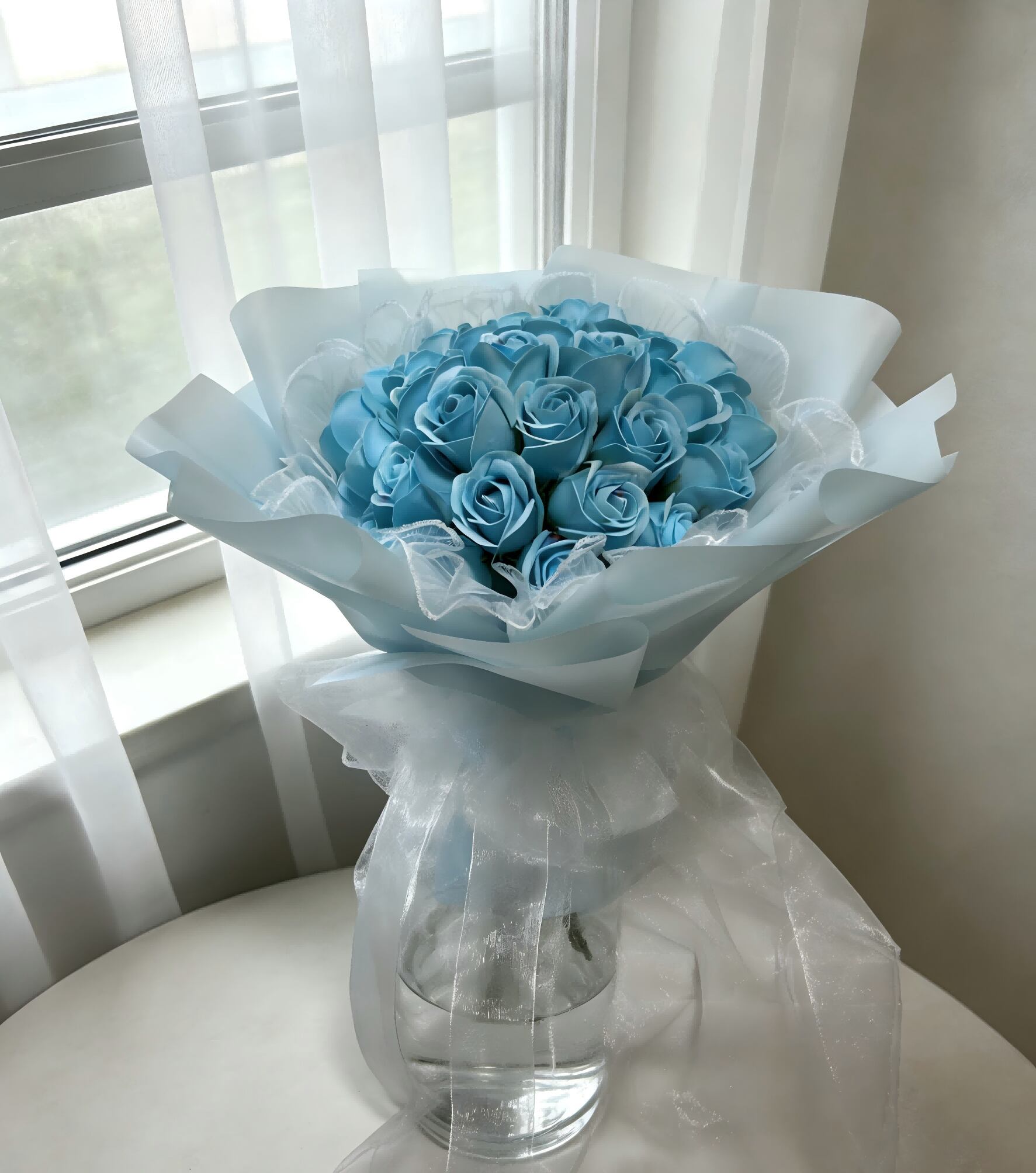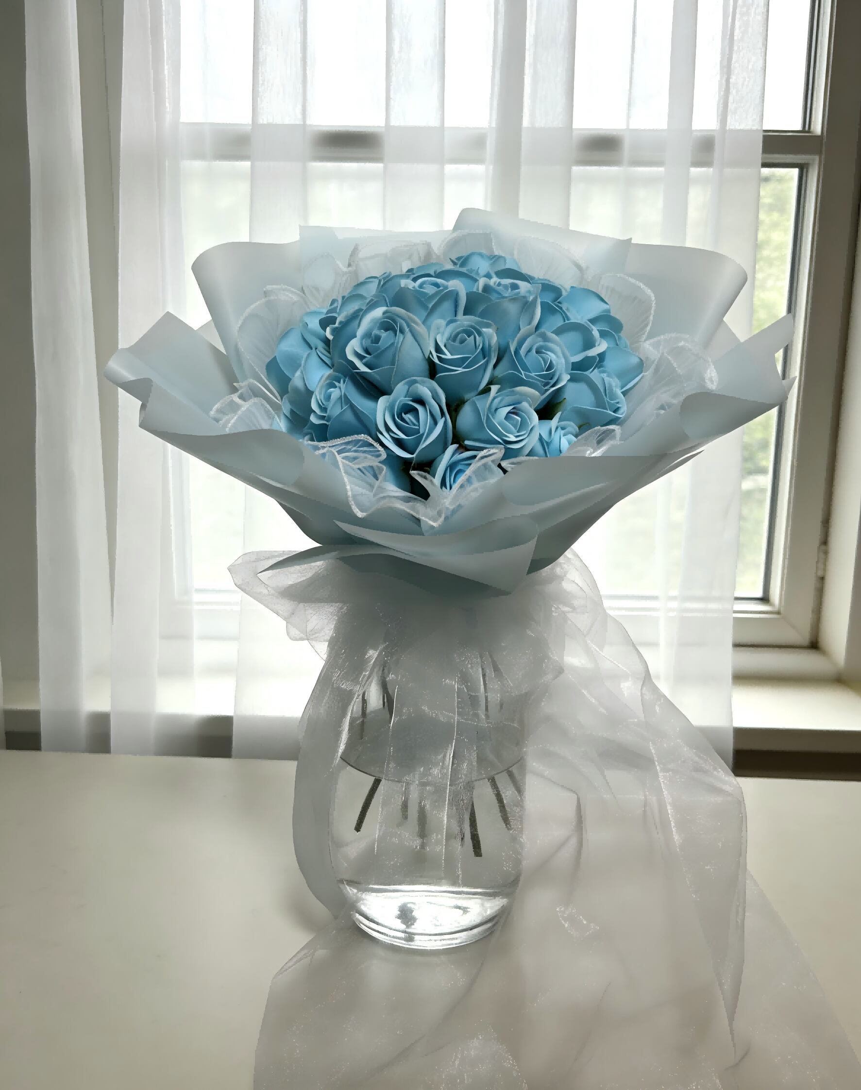 ※プレゼントに最適なソープフラワーの花束です。ほのかに石鹸の香りがする、石鹸素材から作られた造花なので、生花に比べて、長く鑑賞が楽しめます。